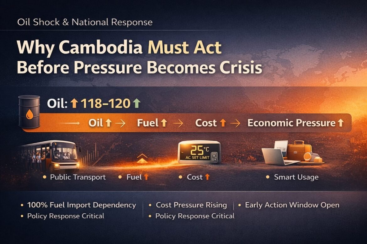 For a country like Cambodia — which relies entirely on imported fuel — this creates a clear and unavoidable transmission:
